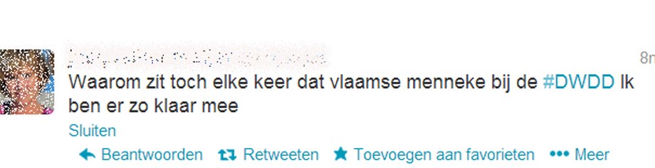 Vandermeersch schuift geregeld aan bij De Wereld Draait Door, en ook redacteuren van zijn krant behoren her en der tot de genodigden. Wie wil, kan via search tools als Twinitor (geweldig instrument, registreren hoeft niet) of Hootsuite meelezen met de continue stream of consciousness van de tv-kijker die graag andere kijkers deelgenoot maakt van zijn hoogstpersoonlijke opwellingen. Soms grappig, of inhoudelijk sterk, maar vaker zijn het gedachteloze oprispingen over kleding, haar, opmaak, rare neus of mond, versprekingen, kan die meneer/mevrouw niet weg, zo klaar mee, enzovoort. En dan zijn daar ook nog de minder nette reacties.